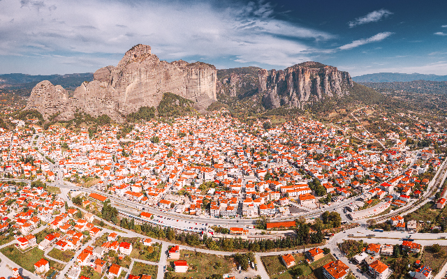 這座城市是遊客參觀邁提歐拉修道院群的主要門戶,擁有1573年建成的聖母升天教堂等歷史建築。當地居民主要從事旅遊和農業,餐廳供應正宗的希臘美食。城市四周環繞著壯觀的自然景觀,包括岩石、森林和溪流。