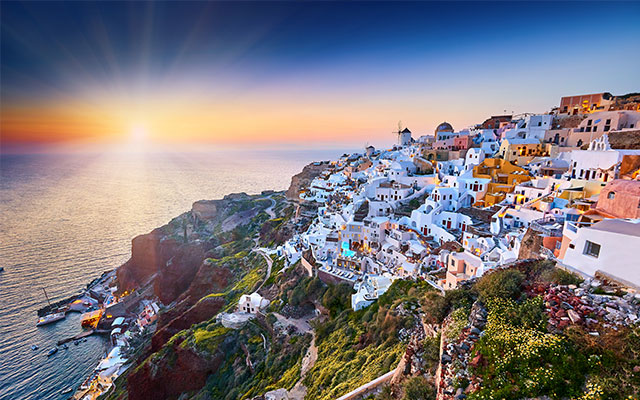 伊亞日落被譽為世界最美的日落之一,是愛琴海上的浪漫象徵。每當黃昏時分,天空由蔚藍漸變為金橙、玫紅和紫色,陽光灑在愛琴海的波光中,映襯出夢幻般的景象。當太陽逐漸沉入海平線,天空與海水交織成絢爛的色彩,伴隨清涼海風,這瞬間的美麗令人屏息。