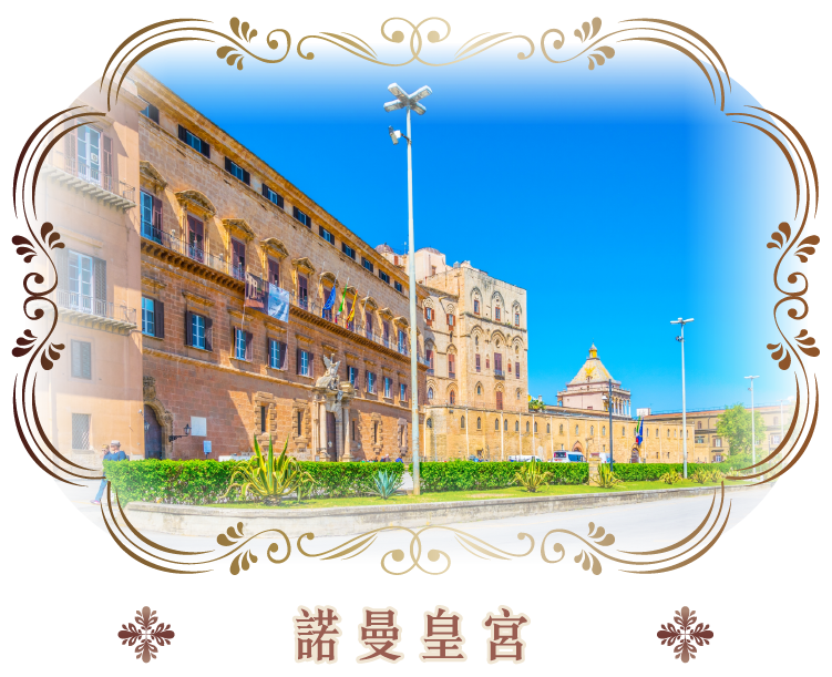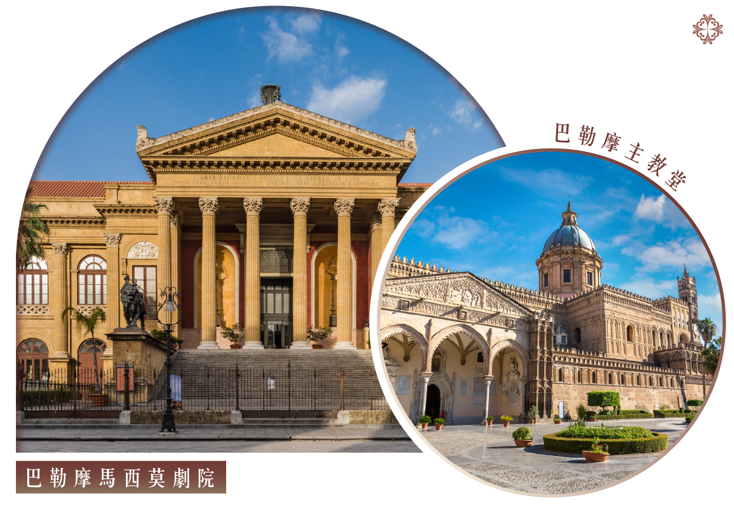 西西里迷人首都美麗的海灣旁的西西里大城,融合多樣宗教文化,建築藝術精彩無比。更有歐洲現存歷史悠久的諾曼皇宮,金碧輝煌的內部裝飾,令人為之驚艷。