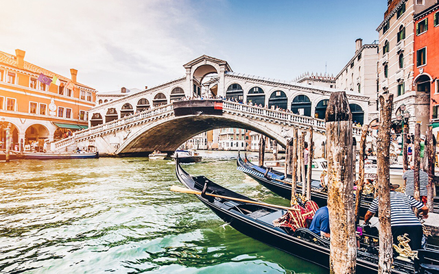 里亞托橋是威尼斯跨運河的幾座大橋之一,也是其中最古老、最出名的一座。里亞托橋是唯一的石造拱橋,曾倒塌兩次,經過後人重新設計並於1591年落成,距今已有400多年的歷史,依然帥氣橫跨運河,穩穩屹立不搖成為威尼斯代表性的建築。