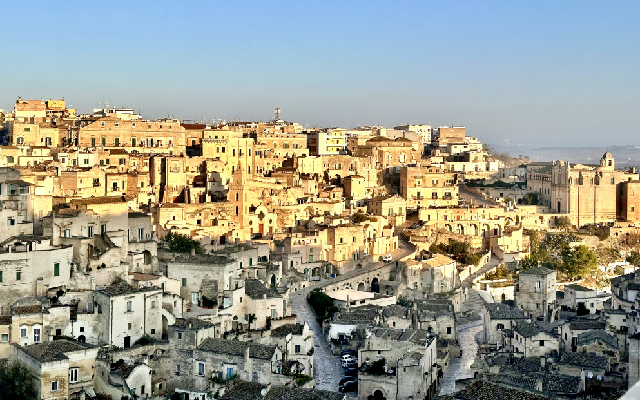 為義大利最古老且獨特的城市之一,以喀斯特山谷間的沙西石屋建築群聞名。這些原始石屋為早期穴居人所鑿建,層層堆疊、錯落有致,彷彿時光靜止的山城。古城分為南北兩區,漫步其間,彷彿置身聖經時代的耶路撒冷場景,極具歷史氛圍與宗教意象,被列為世界遺產。
