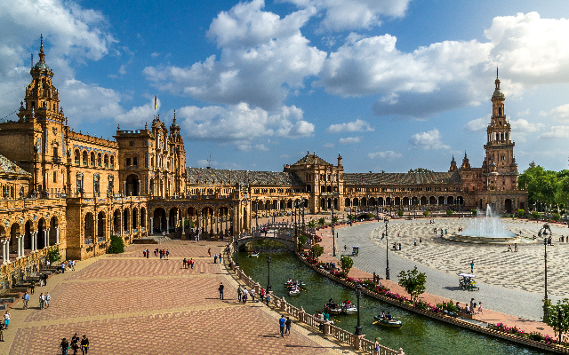 1929年興建的西班牙廣場,建築中展露出海上強權的氛圍,廣闊優雅的半圓形廣場,摩爾風格繁複又鮮豔的磁磚壁畫,代表了西班牙不同省份,靜謐的運河如同被分隔的大陸與海洋,獨特建築被不少電影取為拍片場景。【如遇舉辦活動將無法參觀,敬請見諒】