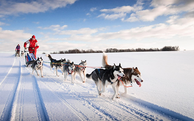 一般使用在北歐拉雪橇的工作犬都是混種的短毛哈士奇,天生熱愛戶外奔跑,因為擁有雙層的毛層覆蓋,甚至在零下20度C的氣溫下都不覺得寒冷。奔馳在拉普蘭荒野銀白大地之上,享受風馳電掣之快感。