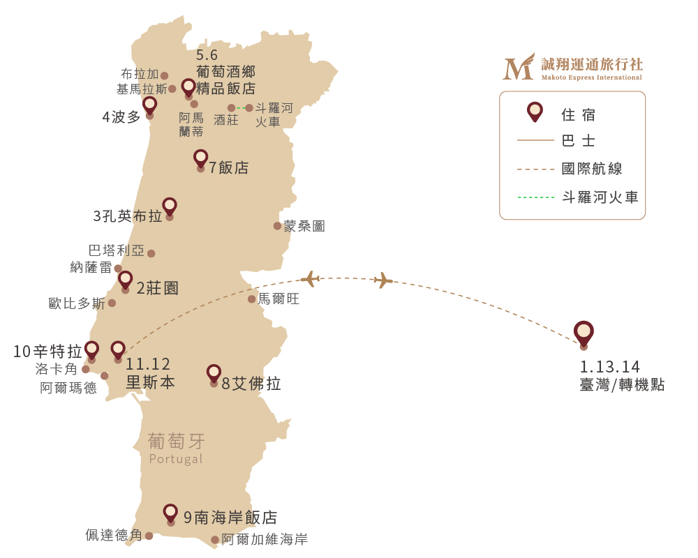 飯店→基馬拉斯→布拉加→葡萄酒鄉精品飯店