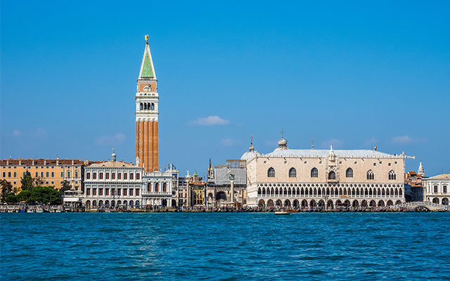 是威尼斯的地標性建築,高度約99米,隸屬於威尼斯最主要的聖馬可教堂。9世紀時,鐘樓的前身是一座碼頭的瞭望臺,今天的樣貌則是鐘樓於1902年發生倒塌意外後,於1912年按照原設計所重新建構而成的。
