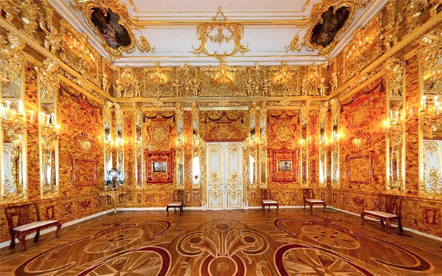 以宏偉華麗之建築與奢華之裝潢而聞名,宮中有聞名於世的琥珀廳,原由崇尚藝術的普魯士國王腓特烈國王下令興建於柏林的起居室中,後來送給沙皇彼得一世。極盡奢華的琥珀廳是用六噸琥珀及馬賽克細緻鑲嵌金碧輝煌的圖案,稱譽為世界人類文化奇景。