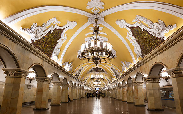 始建於1935年,超過80年的歷史,有地下教堂、地下博物館美稱的莫斯科地下鐵。莫斯科地下鐵每一站都有不同的建築特色,所使用的建材也不盡相同,花崗石、大理石、青銅、馬賽克等,樣樣具有獨自的特色,您可在此盡興耗盡所有記憶體,留下美麗回憶。