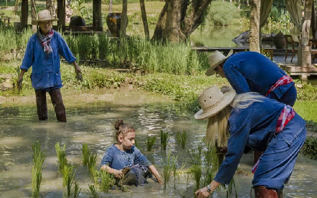 在清邁四季酒店,隨當地農夫踏入一片翠綠稻田,捲起褲管感受泥土的溫潤觸感,親手栽下象徵豐收的稻苗。這段農耕體驗,不僅讓您深入領略泰北田園的純粹風情,更是一場洗滌心靈、回歸自然的療癒之旅。(房客免費體驗,請根據時間表提前預約)