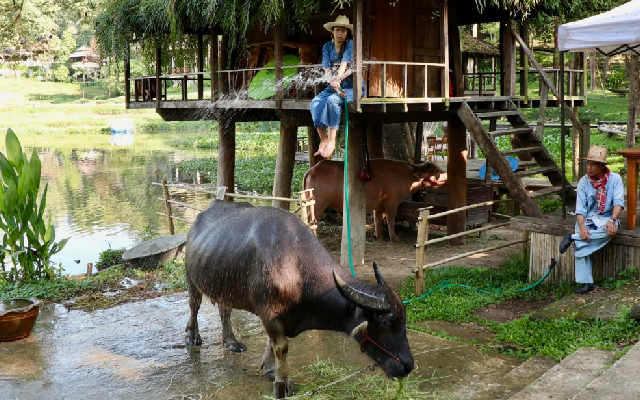 在清邁四季酒店的池塘邊,與溫馴可愛的水牛展開親密互動,親手為牠們搓洗、沖水,看牠們慵懶享受的神情。笑聲與水花交織間,留下專屬於泰北農村的溫暖回憶。(房客免費體驗,請根據時間表提前預約)