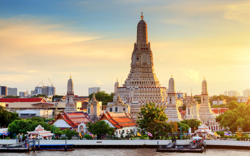 坐落於昭披耶河西岸的鄭王廟,又名黎明寺,是曼谷最具代表性的宗教建築之一。主塔高聳,外牆鑲嵌彩瓷與貝殼,精緻壯麗,在晨光或夕陽下呈現不同風貌。登塔遠眺河岸景致,感受昔日吞武里王朝的歷史餘韻與文化深度。