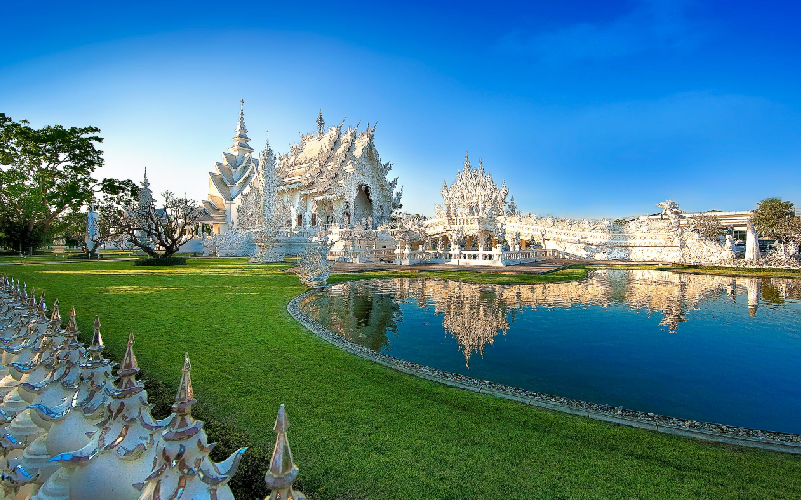 清萊坐落泰國最北,山巒環抱,氛圍靜謐純樸,文化與自然交織迷人。行程涵蓋白廟的純白藝術殿堂、藍廟的夢幻藍調、黑廟的神祕原始風格,以及金三角遙望三國交界。午後漫步聖獅公園,品嚐熱騰騰的泰北小陶鍋,餘韻悠長。