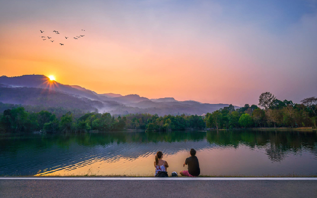 清邁大學校園中的「淨心湖」是觀賞夕陽與悠閒散步的絕佳去處,湖畔步道環繞平整,旁邊草地、野坡與湖面倒影交織成清幽畫面,非常適合拍照、野餐或靜坐放空。