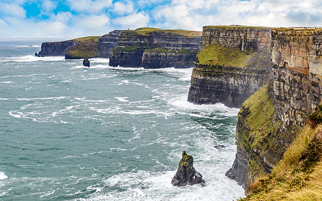 宛如絲綢波洞般的海岸斷崖景觀,與海面落差超過200公尺的斷崖綿延長達八公里,景觀壯闊氣勢凜然,這裡幾乎已經成為愛爾蘭的觀光指南,來到愛爾蘭的遊客一定會來此目睹壯闊的海岸斷崖美景。
