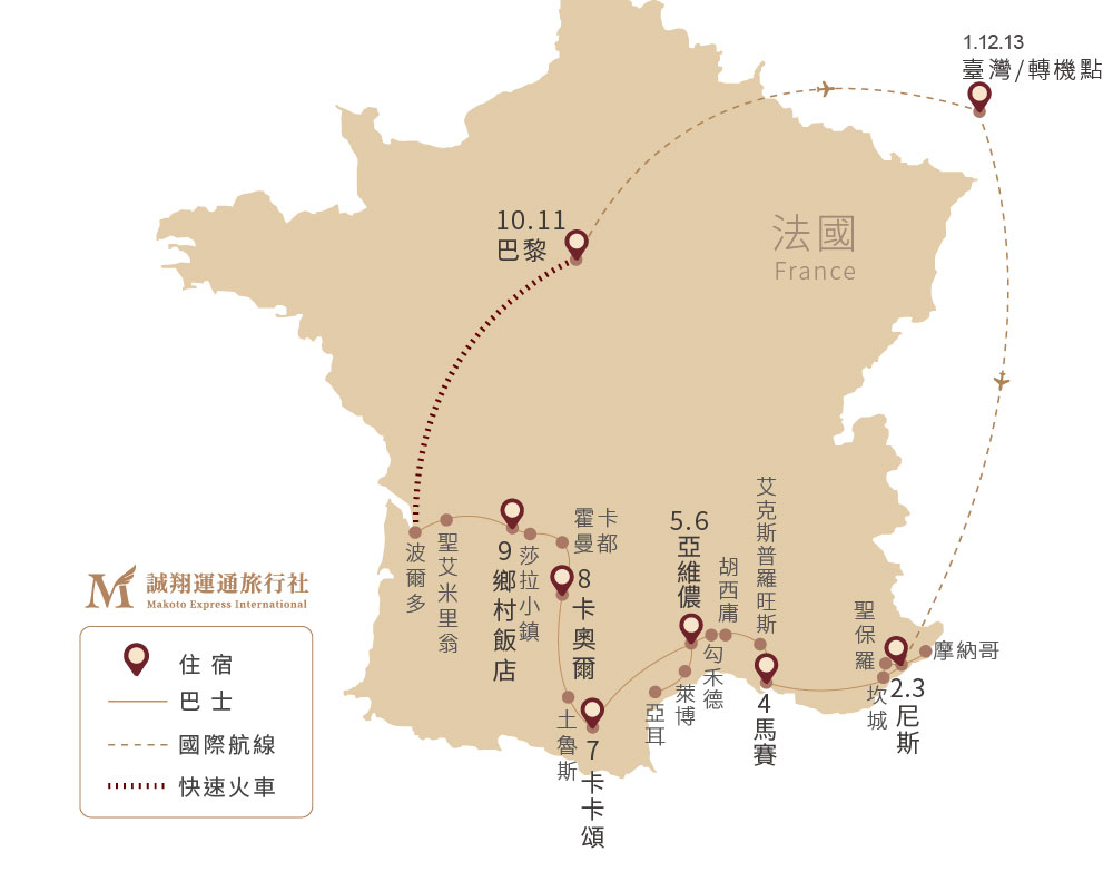 阿聯酋南進北出、TGV子彈列車波爾多到巴黎、優雅旅行 蔚藍海岸+摩納哥、普羅旺斯大城小鎮、藝術之都亞耳&普羅旺斯 中世紀古城卡卡頌、天空之城霍卡曼都、鵝肝美食城莎拉小鎮、波爾多酒鄉 法國在地美食:蜜汁鴨胸、炭烤羊肋排、馬賽魚湯、一星米其林饗宴 全程四星商務飯店、尼斯+亞維儂+巴黎三大主題連泊