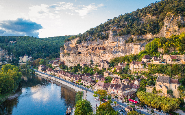 建築在石壁中的石甲村,是法國多敦涅河谷旁最美的鄉村小鎮,整個村莊的房舍,沿著河畔座落在崖壁上面,水中可見清晰倒影,像一幅美麗的圖畫、一個蓋在河谷懸崖邊的村莊。