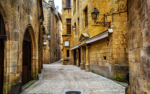 莎拉小鎮位於中法偏西南,是多敦涅地區最出名的美食小鎮,盛產鵝肝和松露。英法戰爭結束後,城鎮損毀嚴重,以黃色石灰岩和棕色頁岩重建,淺黃及紅棕色系的建物極具特色,景色優美宛如童話一般。