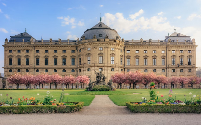 這座德國宏偉的巴洛克式建築傑作,於18世紀落成,曾是烏茲堡親王主教的居所。它被譽為歐洲最美的巴洛克宮殿之一,以精緻的室內裝飾聞名。特別是宏偉的樓梯廳,其天花板繪有世界上最大的濕壁畫。周圍環繞著優雅的宮廷花園,展現出無與倫比的藝術與歷史價值。