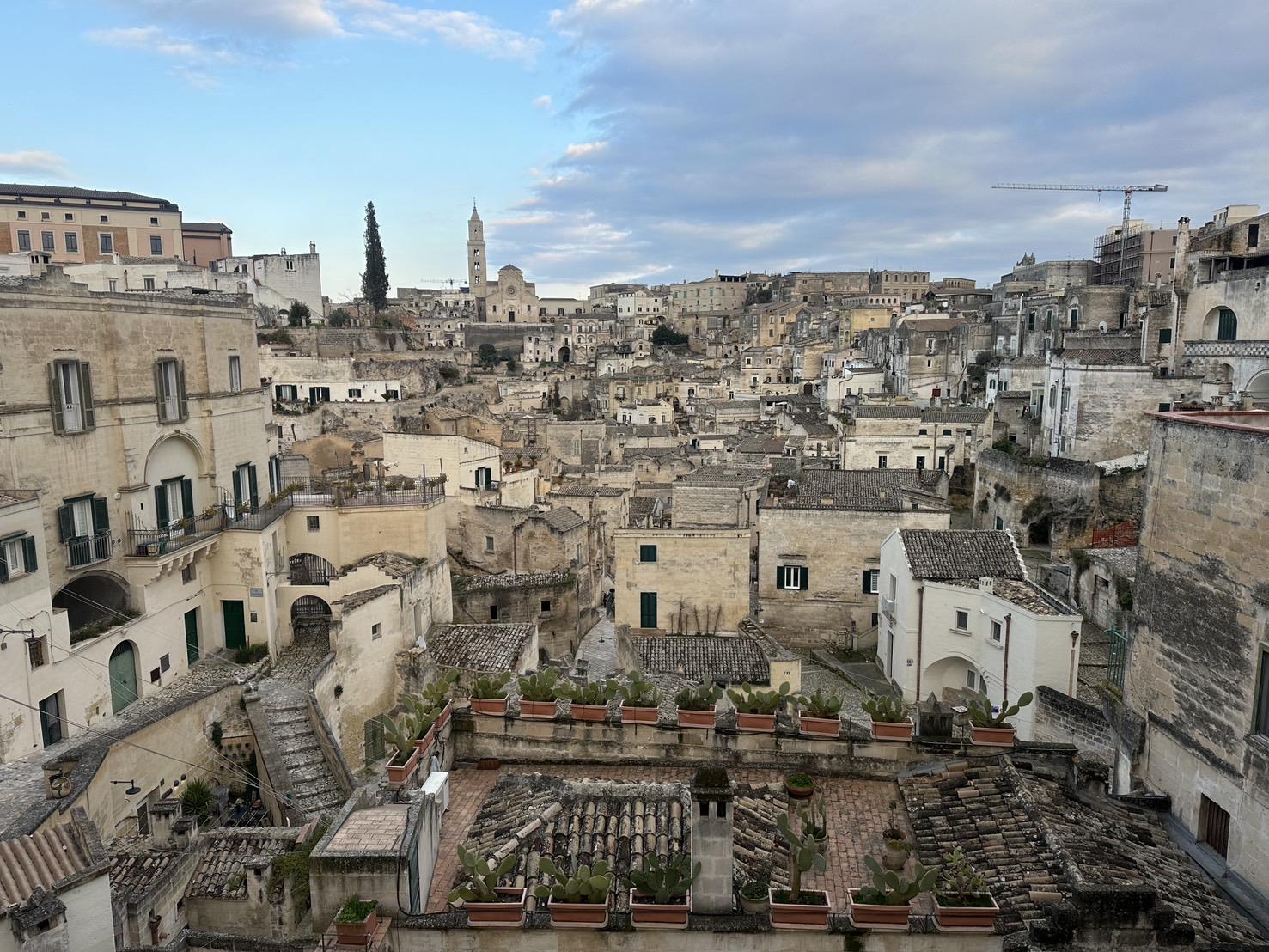 這次義大利之行,其中最讓我感到驚奇與感動的地方,就是位於南部的馬特拉(Matera)。馬特拉被稱為「石頭之城」,以其獨特的洞穴建築「Sassi」聞名於世。整座城市彷彿從岩石中誕生,歷史悠久,充滿原始而神秘的魅力。 初到馬特拉,我被眼前壯觀的景象震撼。