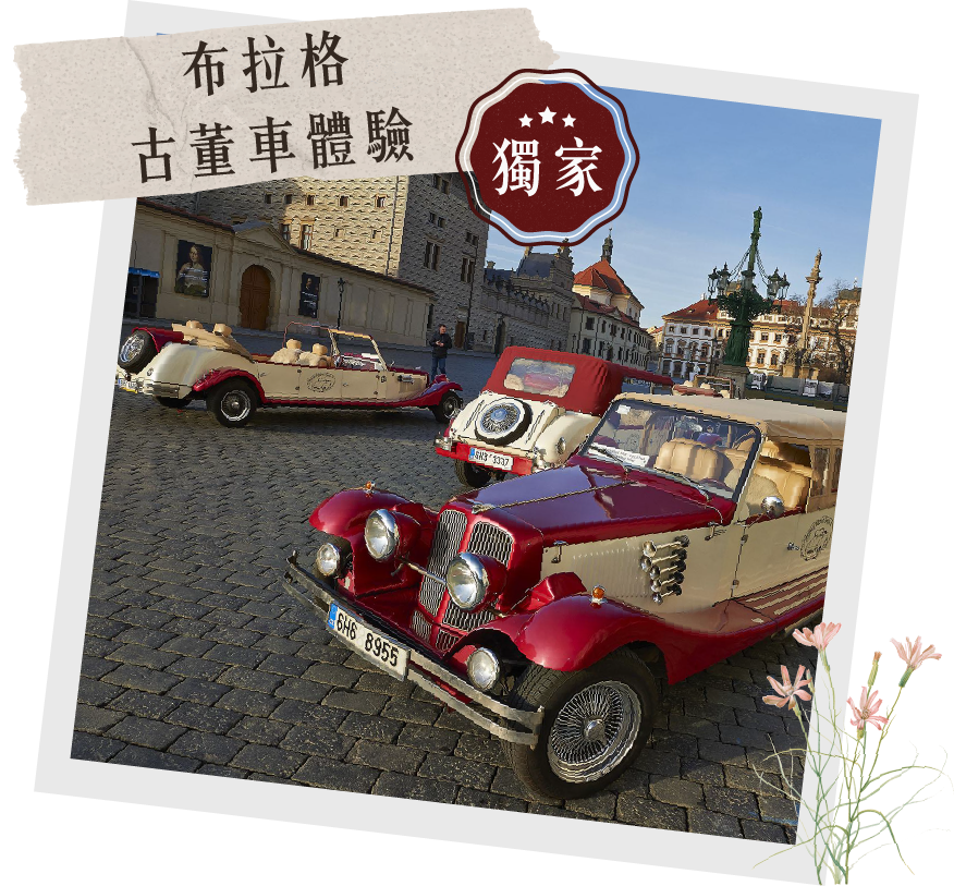 特別安排專屬古董車之旅,優雅穿梭於布拉格的歷史街區。行經布拉格城堡、查理大橋與舊城廣場,彷彿置身歐洲黃金年代,感受古典浪漫的城市氛圍,留下獨一無二的回憶。