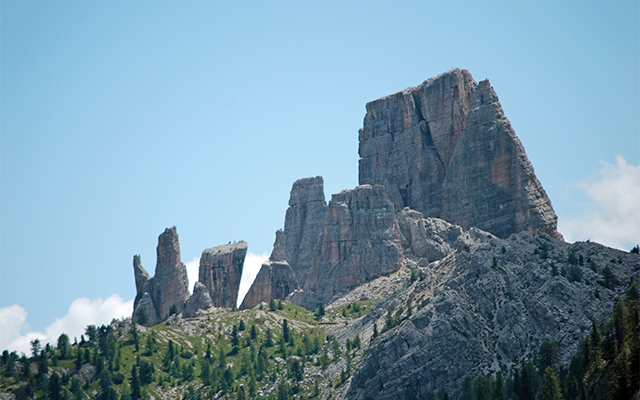 挺拔的山群像一面巨大的屏風,堪稱多洛米堤最氣勢磅礡、最劇力萬鈞的山群。PizesDeCir山群線優美的髮夾彎散落,大名鼎鼎的Sassolungo山,略呈等腰梯形的特殊山型,行經四大隘口之一的PassoGardena時,壯闊山勢都能盡收眼底。