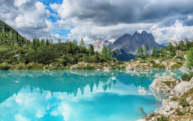 位於義大利北部多洛米堤山區,被譽為「彩虹湖」,以其迷人的湖水色彩和壯麗的周圍山景而著稱。湖水在陽光下呈現出不同層次的翡翠綠和藍色,宛如寶石,四周環繞著鬱鬱蔥蔥的森林與拉特瑪山。傳說這片湖泊是巫師和美人魚故事的背景地,為其增添了一份神秘色彩。