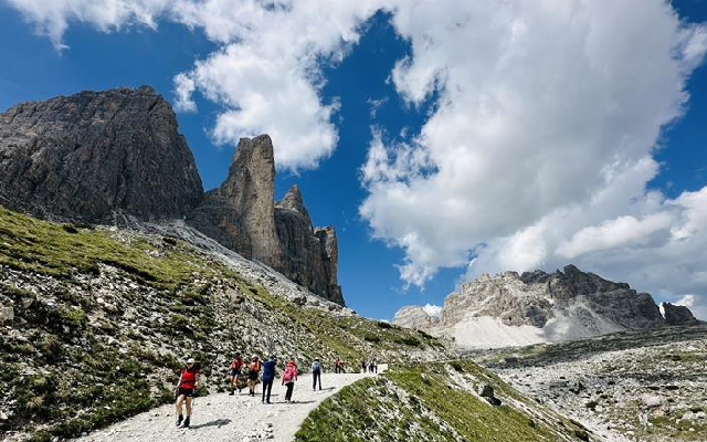 三尖峰是義大利東北部多洛米蒂山脈三個獨特的垛口狀山峰,三個巨大的山峰拔地而起,周遭令人驚嘆的景色。