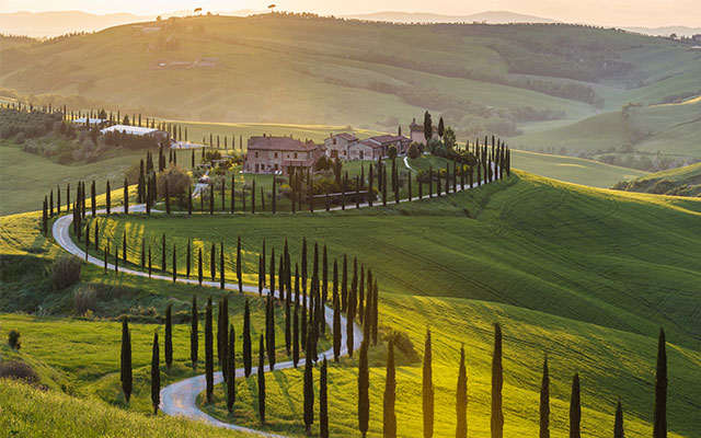 托斯卡尼,被譽為義大利最詩意的角落。綿延的丘陵、金黃麥田、翠綠橄欖樹與筆直柏樹,共同勾勒出如畫的田園風光。特別安排入住莊園式飯店,沉浸在鄉間慢活節奏中,品味托斯卡尼的悠閒與優雅,如夢似幻的美景令人不願醒來。