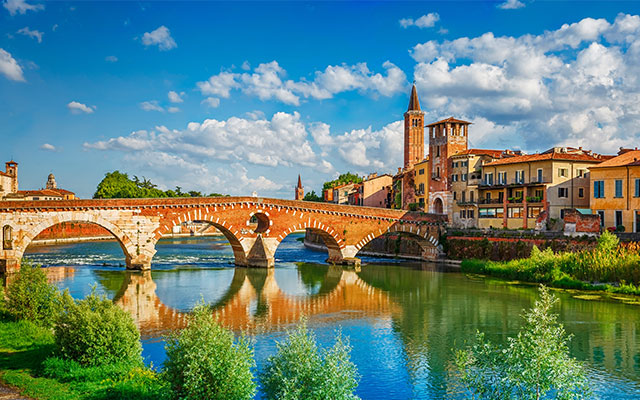 位於義大利北部阿迪傑河畔環繞的一座歷史悠久城市,城中有眾多古羅馬遺跡,包括競技場、古城牆、廣場等等,更是莎士比亞筆下「羅密歐與茱麗葉」的發源地。美麗的愛情故事讓古城更增添幾分姿色,甚至在義大利數千個城鎮中可以用「最浪漫的城市」來形容。