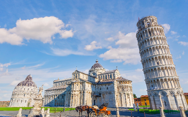 正式名稱為主教座堂廣場,廣場上有四大建築:比薩主教座堂、比薩斜塔、聖若望洗禮堂、洗禮堂墓園,各自相對獨立但又形成統一的羅馬式建築風格,這些以白色大理石打造的建築群在碧綠的草地襯托下,更顯獨特魅力,也是歐洲中世紀藝術的代表中心。