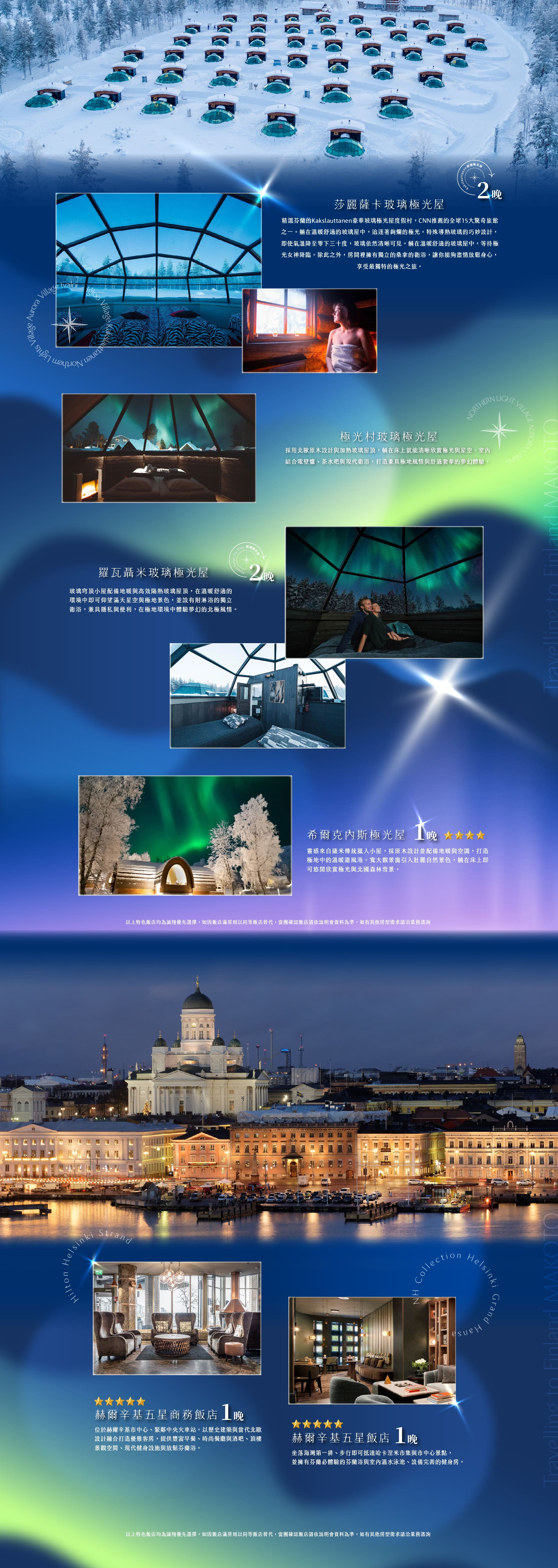 精選特色玻璃屋四晚 赫爾辛基五星飯店兩晚