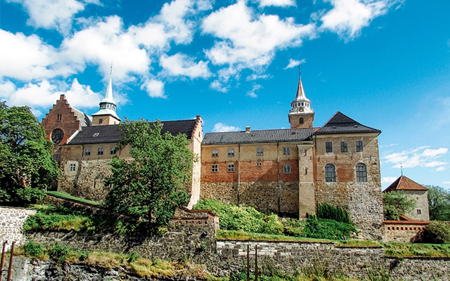 坐落奧斯陸峽灣旁的中世紀城堡,厚實的城牆與塔樓曾經抵擋過無數砲火的洗禮,現在長滿蔥綠草地的堡壘則是當地人喜愛遛狗、野餐的絕佳地點,遊客在此能欣賞港口和城市美景,也能參觀博物館、皇室居所與教堂。