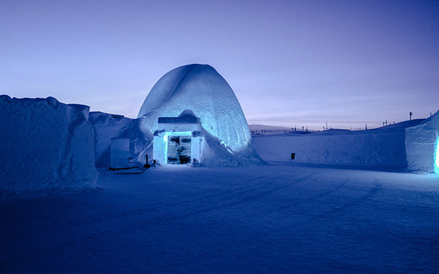 以冰雪打造的房屋,冬季開放參觀,一到春天整座屋子就融化流入河裡,必須每年重建,所有硬體都是冰塊打造。除此之外,在冰酒吧中連杯子都是冰塊做的,喝起酒來特別有感。特別安排於冰屋享用午餐,在充滿冰凍氛圍與獨特冰雕中用餐,絕對是最難得的特殊體驗。