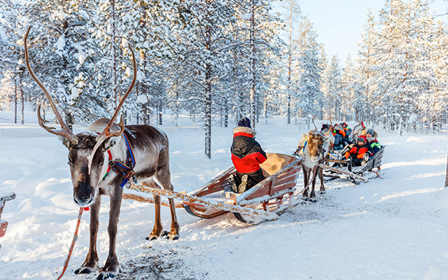 馴鹿是拉普蘭地區的薩米人賴以為生的重要夥伴,若是車行在拉普蘭地區,常有機會在路旁看見成群的馴鹿,而馴鹿也是薩米人重要的駝運貨物的好夥伴,因此馴鹿的雪橇就演變成了一種懷舊觀光的體驗。雖然速度比不上哈士奇,但沿途欣賞風景,完整捕捉精彩照片。