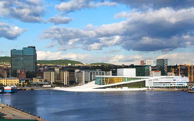 由挪威著名建築所歷時5年建造,於2008年4月正式啟用。36000塊義大利大理石及花崗岩舖成斜坡是歌劇院的白色屋頂,猶如從峽灣中拔起的冰山,或一塊巨大的水上浮冰。人們可以輕鬆自在於此曬太陽看書,也可漫步上頂端,俯瞰整座城市和峽灣。