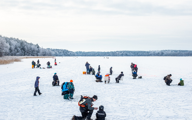 拉普蘭地區冬季長達6個月之久,除了在冰天雪地裡欣賞極光,還可從事有趣的極地冰釣。在專業冰釣教練的細心指導下,運用冰釣工具在冰層鑿出冰洞,就可以拿釣具魚餌開始冰釣。