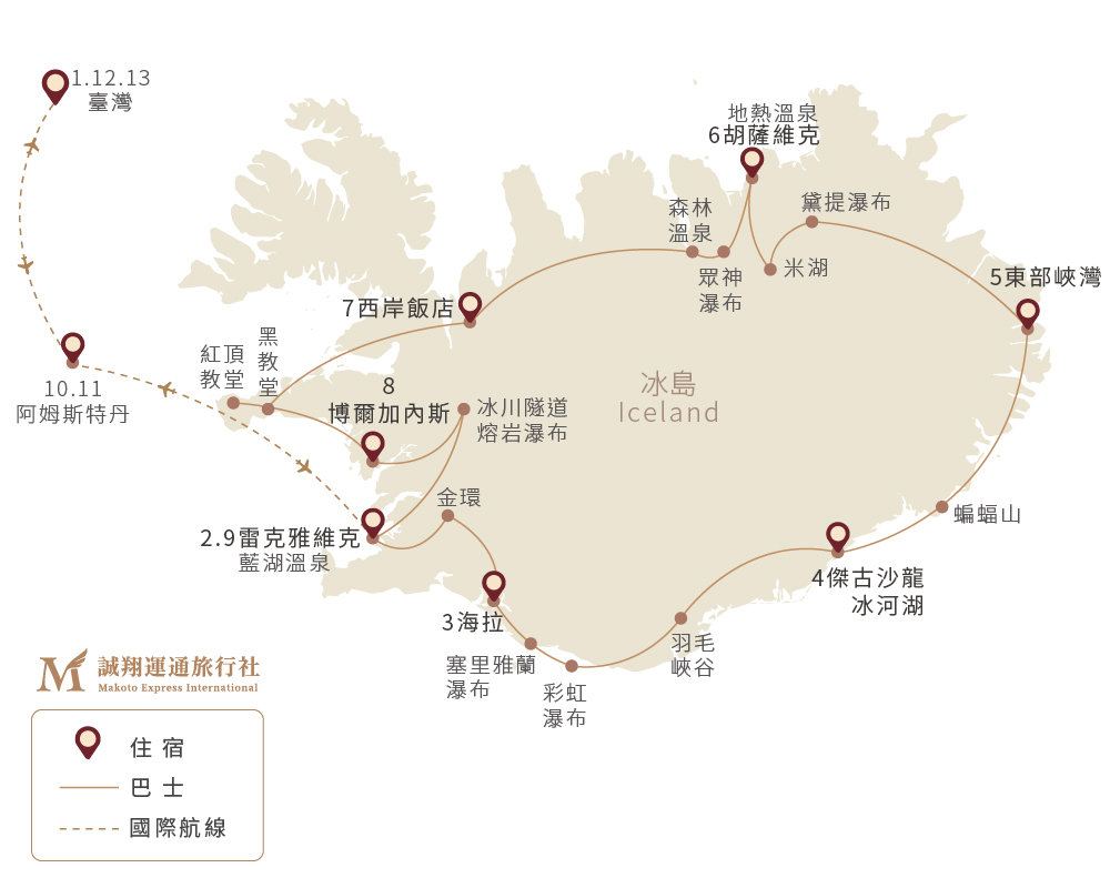 博爾加內斯-62KM-冰川隧道-132KM-雷克雅維克-60KM-機場