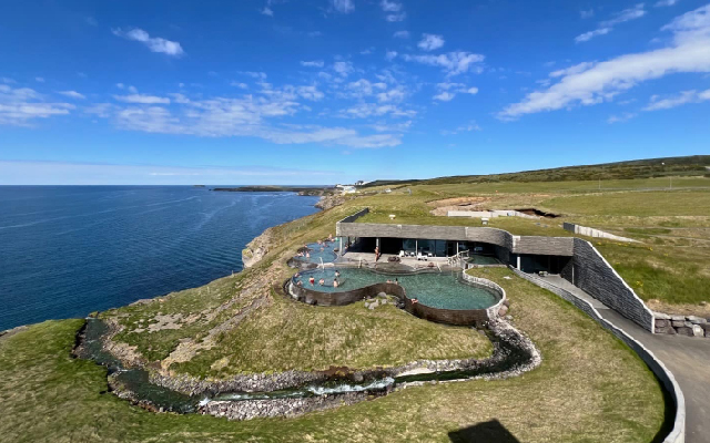 2022年開幕的新地熱溫泉,位於阿庫雷里峽灣旁的樹林間,設計融合自然與現代感。露天池面向壯麗山景與海灣,泡湯時彷彿置身森林童話中。冬季夜晚泡湯賞雪或追極光,更是獨一無二的體驗,已成為冰島最熱門的新興景點。