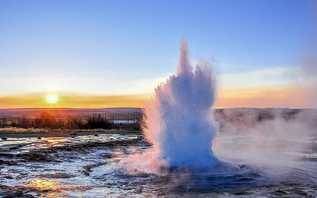 此區最早開始噴發的是蓋錫爾間歇泉,是歐洲第一個被發現的間歇泉,據說噴發高度可達70公尺,最高甚至有170公尺的誇張紀錄,日久因地質變動原因已經完全不噴發,旁邊小規模的史托克間歇噴泉,噴發出的30公尺的高度仍蔚為奇觀。