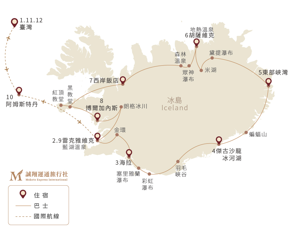 • 14:10 - 15:25 搭機飛往冰島
