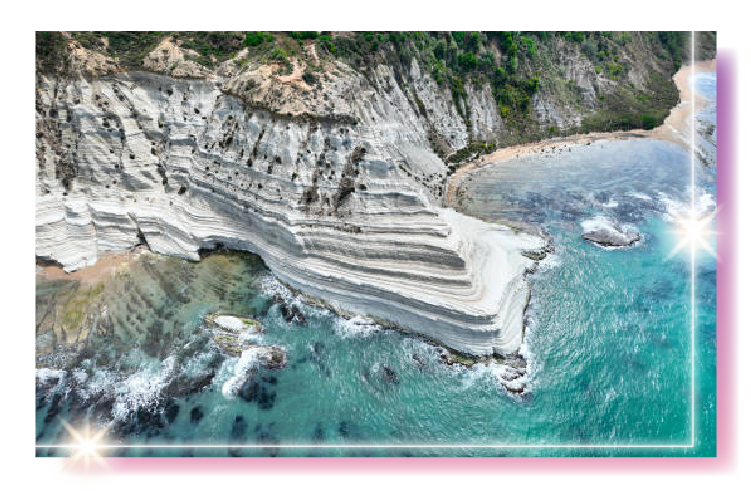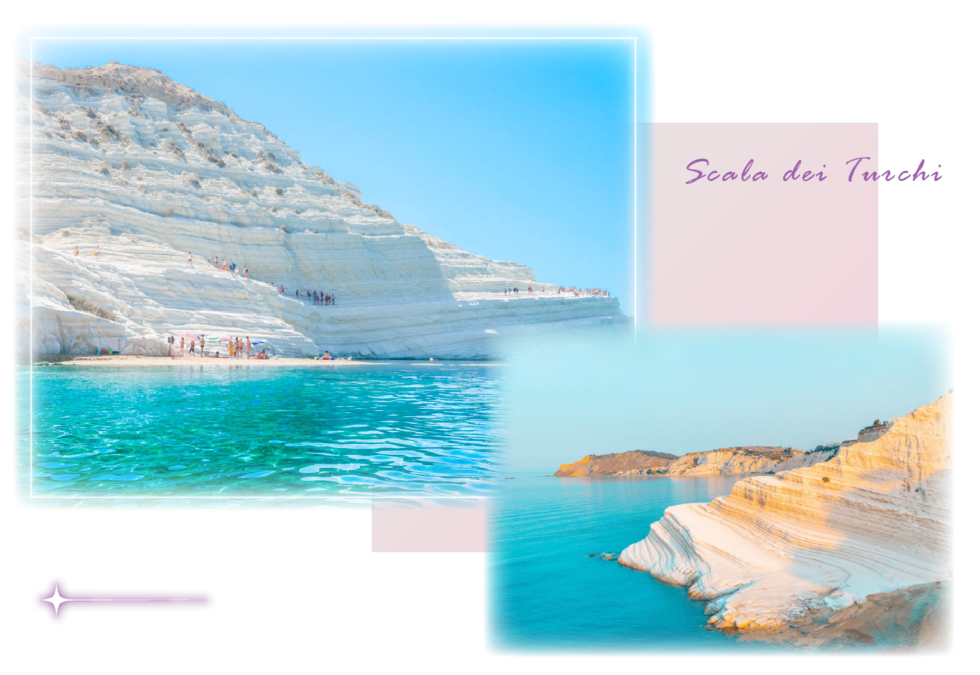 位於海岸線上的這座純白石灰岩地形,層層堆疊如天然階梯,潔白表面與寶藍海水形成強烈對比,呈現近乎超現實的景致。是西西里最夢幻的自然地標之一。
