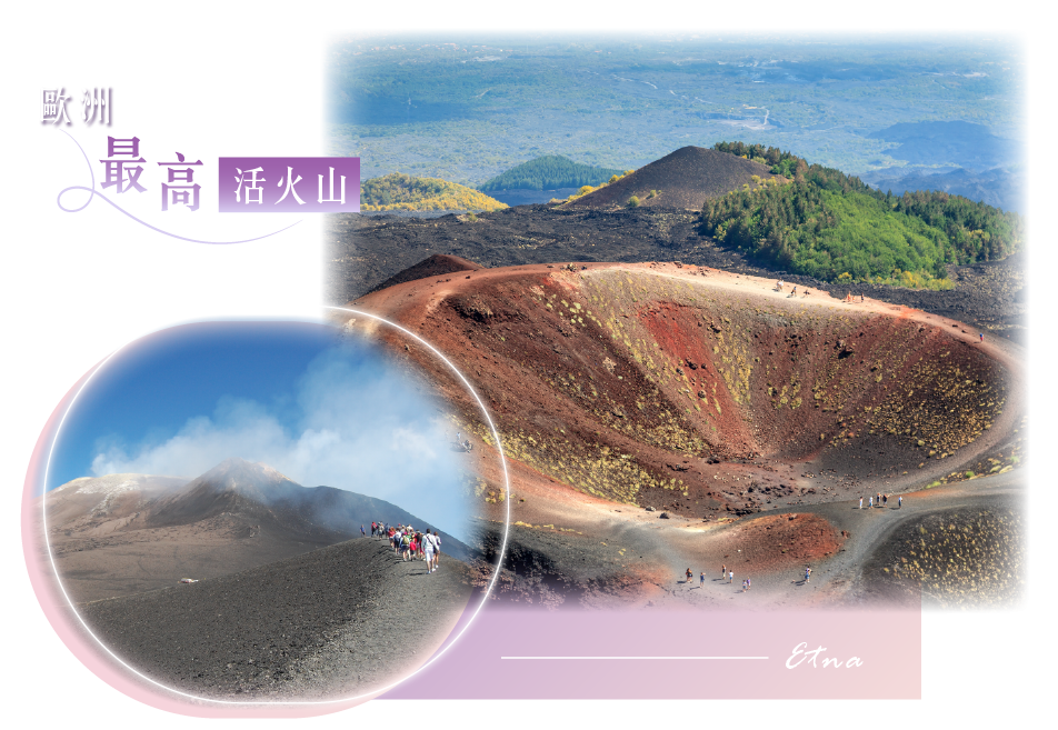 艾特納火山是西西里的象徵,也被當地人親切地稱為「Grande Mamma」。其火山灰景觀延綿無盡,冬季時山路常覆蓋白雪,呈現截然不同的壯麗風貌。除了能登山健行,也可搭乘越野大腳車深入火山區,近距離觀賞火山口與熔岩地形,感受大自然的強大力量。