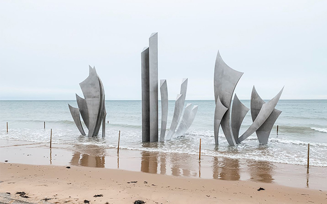盟軍諾曼第登陸戰役DdayBeach,搶灘總共有五個灘頭。遊覽OmahaBeach,此處也是電影搶救雷恩大兵拍攝地點,參觀德軍碉堡及勇敢紀念碑LES BRAVES。