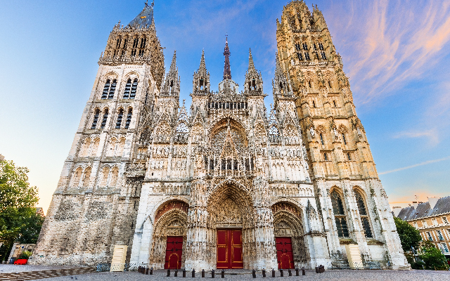 位於城市的中心地帶,為盧昂最重要的三大教堂之一,哥德式教堂外觀建於12世紀,歷經4個世紀不斷整修、擴建,讓盧昂主教教堂擁有各時期歌德建築的特徵,16世紀時更加入文藝復興時期的風格,可說是歐洲建築學上最好的教科書,更是法國最高的教堂建築。